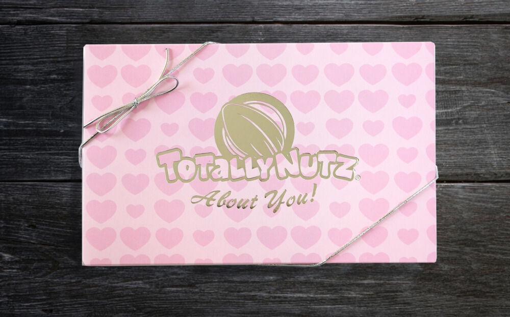 Your choice of two freshly roasted, cinnamon glazed almonds, pecans, cashews, or chocolate almonds, 20 oz., in a beautiful pink hearts gift box, with silver, embossed writing which reads: Totally Nutz About You! This is the perfect gift for Valentine’s Day, Mother’s Day, Professional Assistant Day, birthdays, or any other special occasion. All gift boxes contain freshly roasted products and are sealed in the box for maximum freshness.